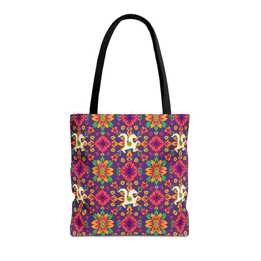 Tote Bag, (AOP), Aries, Zodiac v4, Flower Pattern