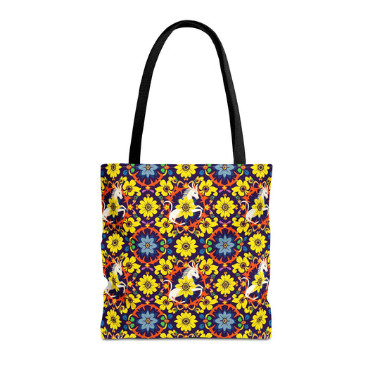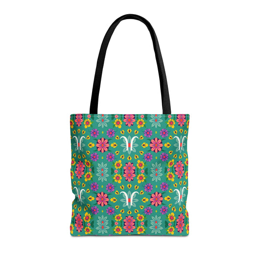 Tote Bag, (AOP), Aries, Zodiac v1, Flower Pattern