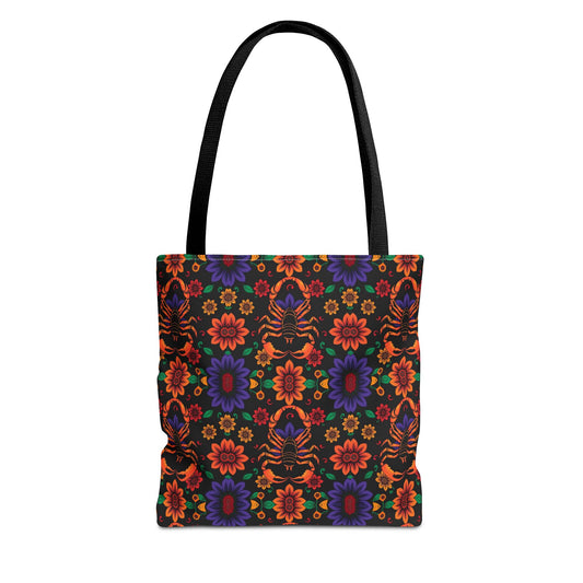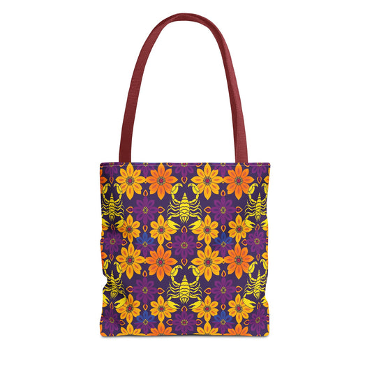 Tote Bag, (AOP), Scorpio, Zodiac v2, Flower Pattern