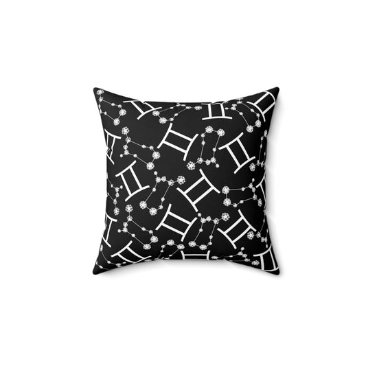 Zodiac Spun Polyester Square Pillow Gemini Zodiac Sign Black Pillow
