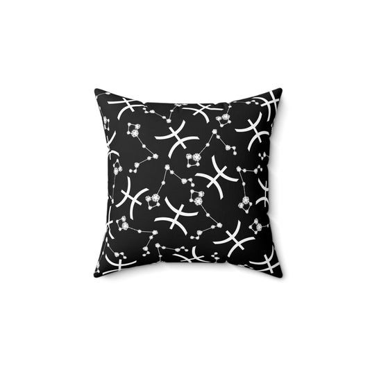 Zodiac Spun Polyester Square Pillow Pisces Zodiac Sign Black Pillow