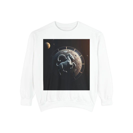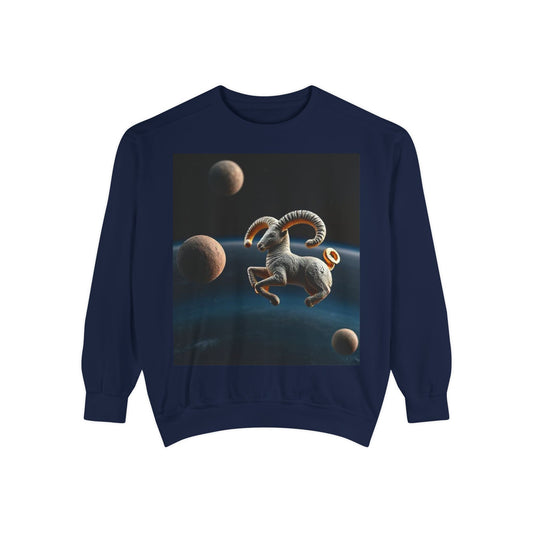 Garment-Dyed Sweatshirt, Unisex, Space Animal Design v1, Aries