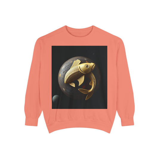 Garment-Dyed Sweatshirt, Unisex, Space Animal Design v1, Pisces