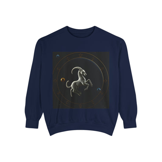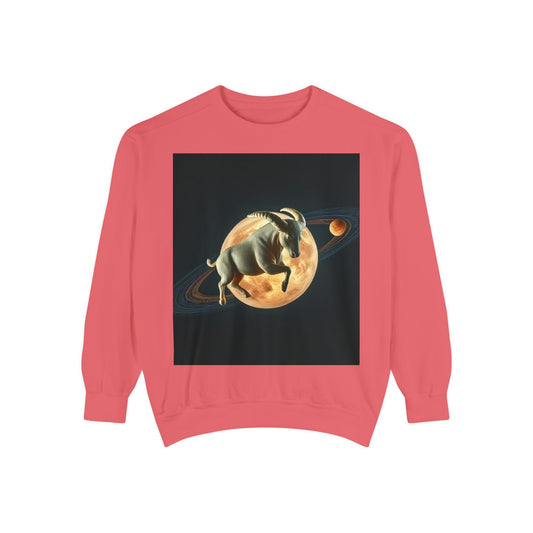Garment-Dyed Sweatshirt, Unisex, Space Animal Design v1, Capricorn