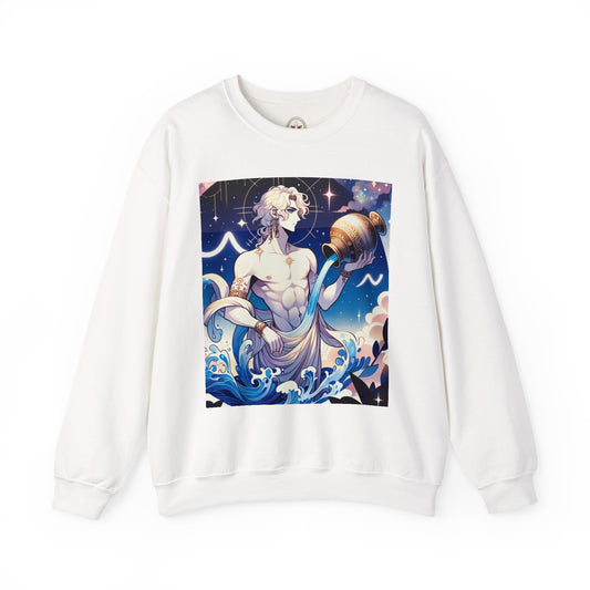 Unisex Heavy Blend™ Crewneck Sweatshirt, Anime Aqua God, Aquarius Zodiac Design