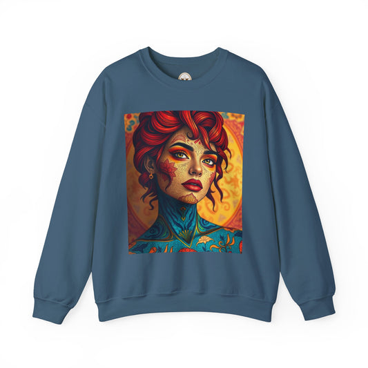 Unisex Heavy Blend™ Crewneck Sweatshirt, anime girl in wheat field, Virgo Zodiac Design