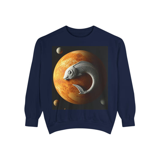 Garment-Dyed Sweatshirt, Unisex, Space Animal Design, Pisces