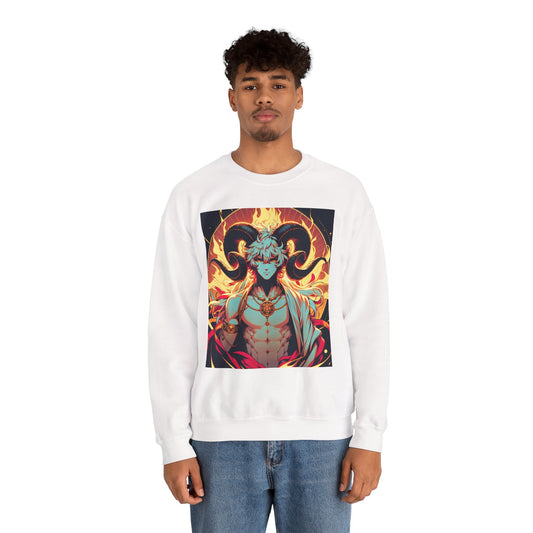 Unisex Heavy Blend™ Crewneck Sweatshirt, Anime Fire Aries, Zodiac Design
