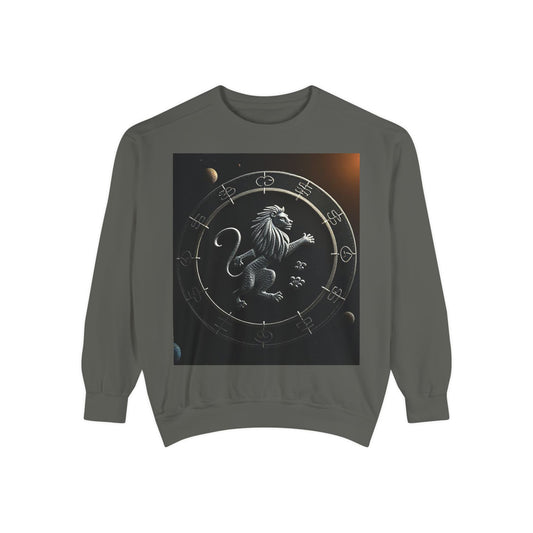 Garment-Dyed Sweatshirt, Unisex, Space Animal Design, Leo