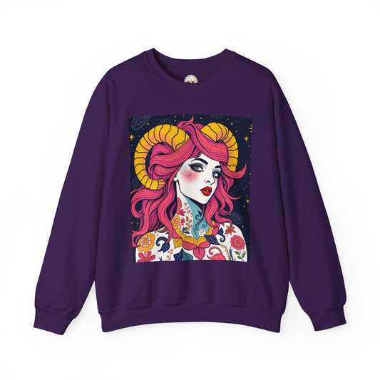 Unisex Heavy Blend™ Crewneck Sweatshirt, Aries, Zodiac v1, Sexy Pattern