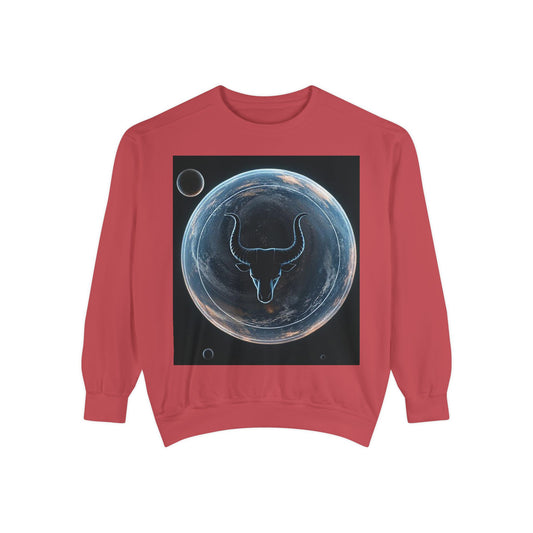Garment-Dyed Sweatshirt, Unisex, Space Animal Design, Taurus
