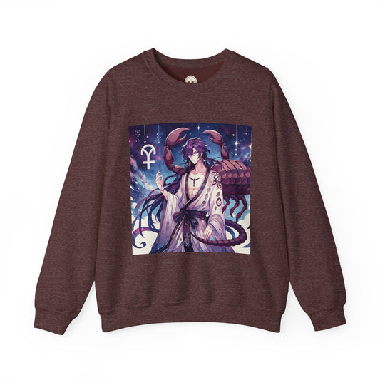 Unisex Heavy Blend™ Crewneck Sweatshirt, Scorpio Zodiac Design, purple scorpion anime