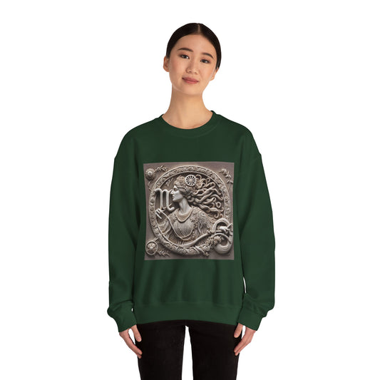 Unisex Heavy Blend™ Crewneck Sweatshirt, Stone Carving, Virgo Zodiac Design
