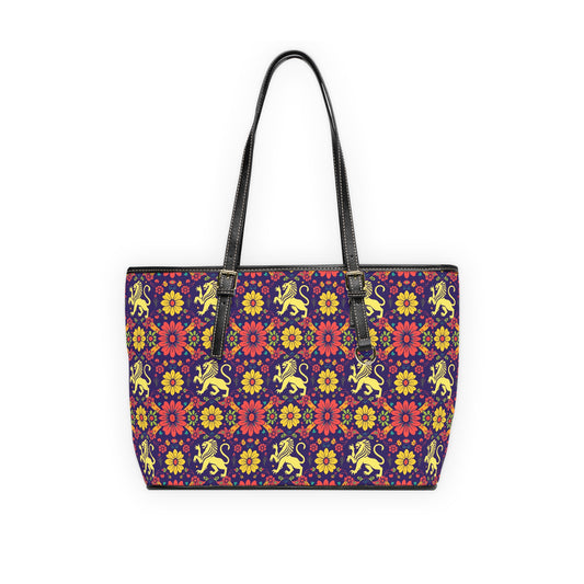 Leather Shoulder Bag, Leo, Zodiac v2, Flower Pattern
