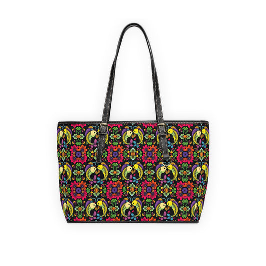 Leather Shoulder Bag, Pisces, Zodiac v2, Flower Pattern