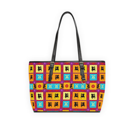 Leather Shoulder Bag, Leo, Zodiac v2, Shapes Pattern