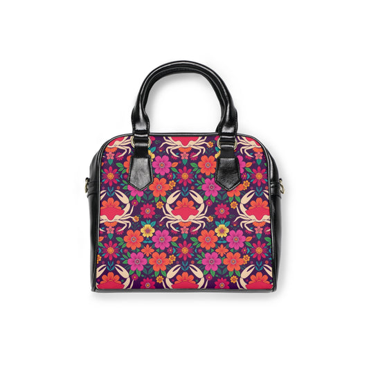 Shoulder Handbag, Cancer, Zodiac v1, Flower Pattern