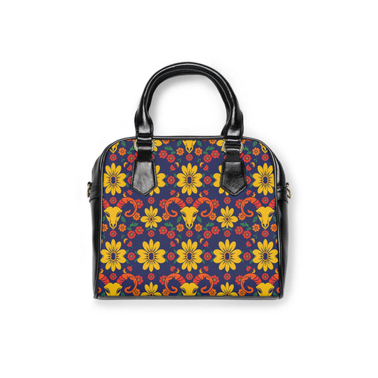 Shoulder Handbag, Capricorn, Zodiac v2, Flower Pattern