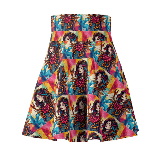 Women's Skater Skirt, (AOP), Scorpio, Zodiac v1, Sexy Pattern