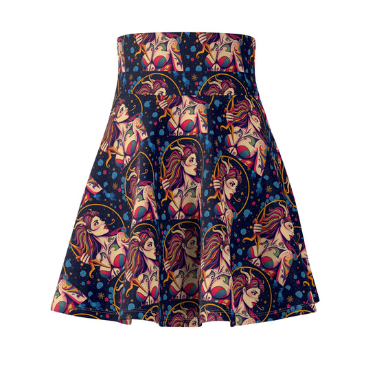 Women's Skater Skirt, (AOP), Sagittarius, Zodiac v1, Sexy Pattern