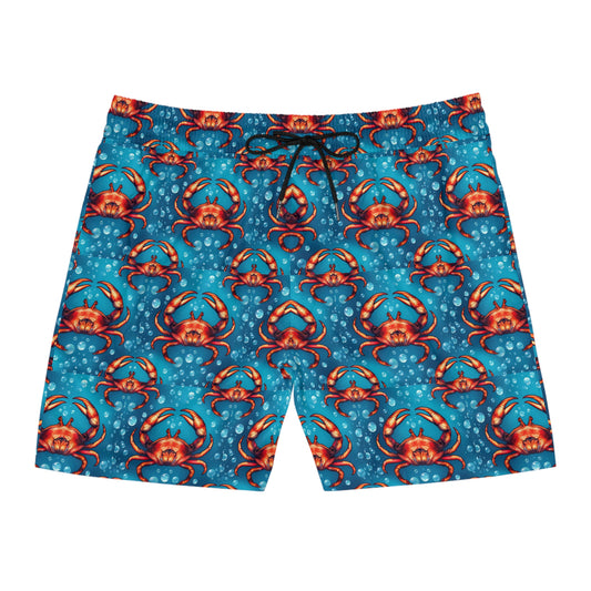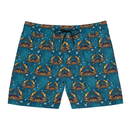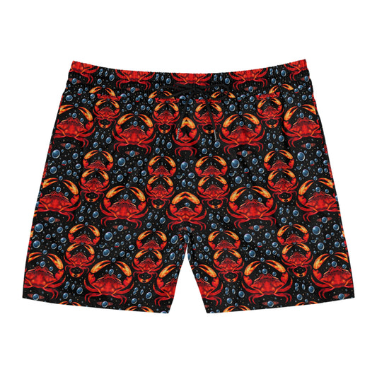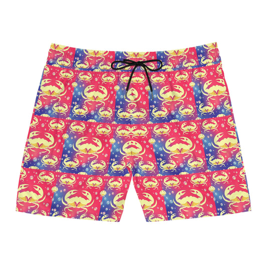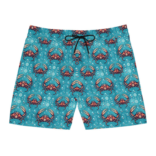 Men's Mid-Length Swim Shorts, (AOP), Cancer, Zodiac v1, Bubble Pattern