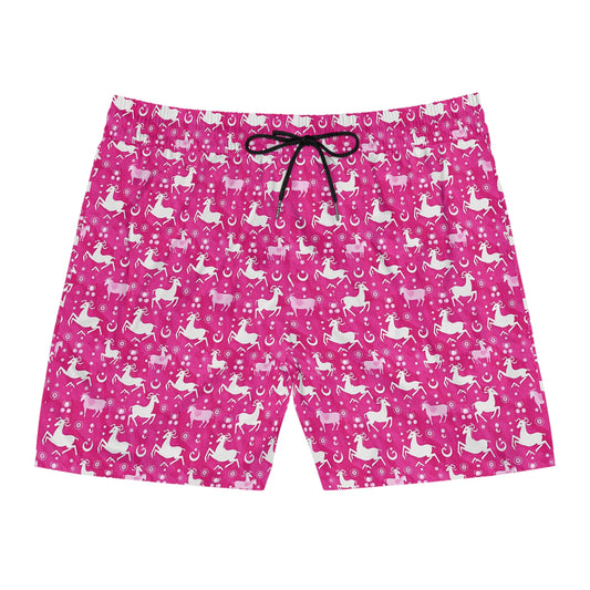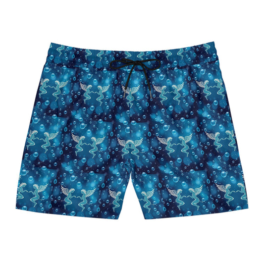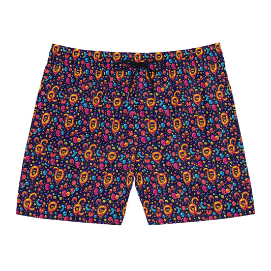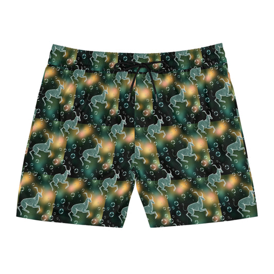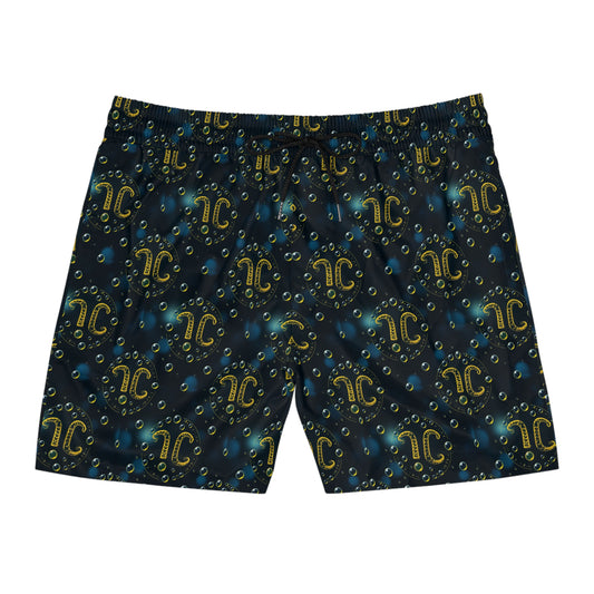 Men's Mid-Length Swim Shorts, (AOP), Capricorn, Zodiac, Bubble Pattern