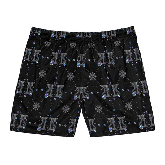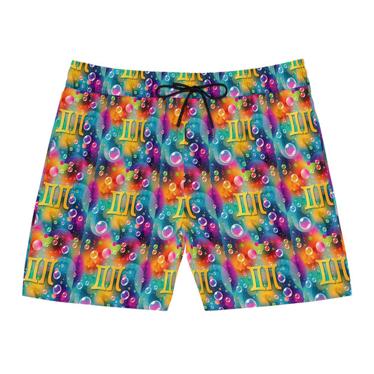 Men's Mid-Length Swim Shorts, (AOP), Gemini, Zodiac v1, Bubble Pattern