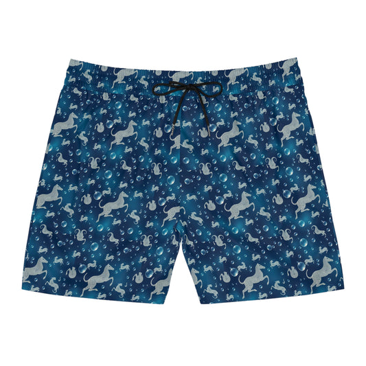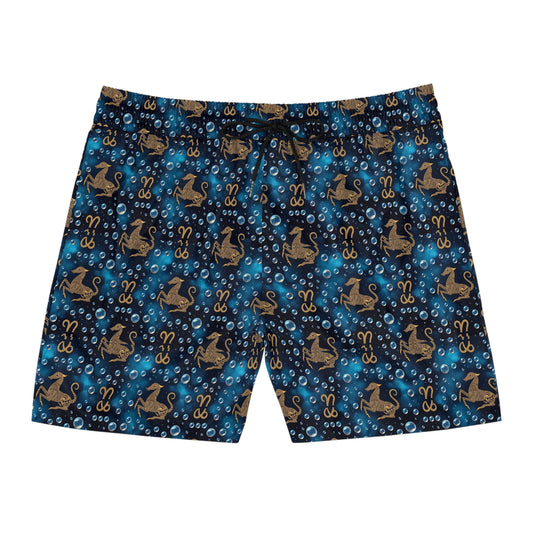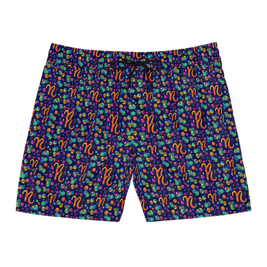 Men's Mid-Length Swim Shorts, (AOP), Capricorn, Zodiac v1, Bubble Pattern