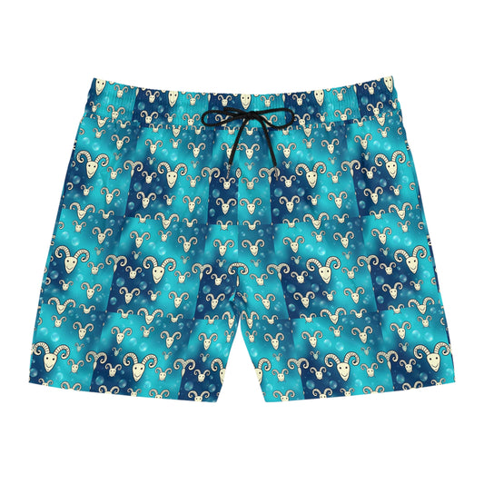 Men's Mid-Length Swim Shorts, (AOP), Aries, Zodiac, Bubble Pattern