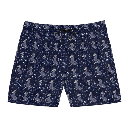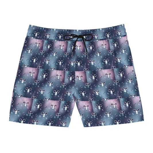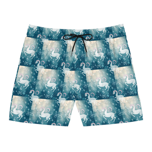 Men's Mid-Length Swim Shorts, (AOP), Capricorn, Zodiac v2, Bubble Pattern