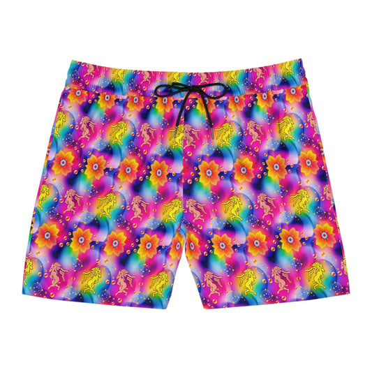 Men's Mid-Length Swim Shorts, (AOP), Capricorn, Zodiac v4, Bubble Pattern