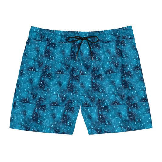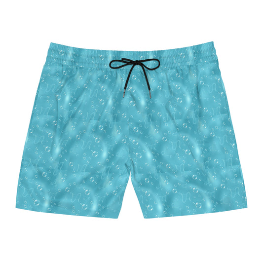 Men's Mid-Length Swim Shorts, (AOP), Aquarius, Zodiac v1, Bubble Pattern