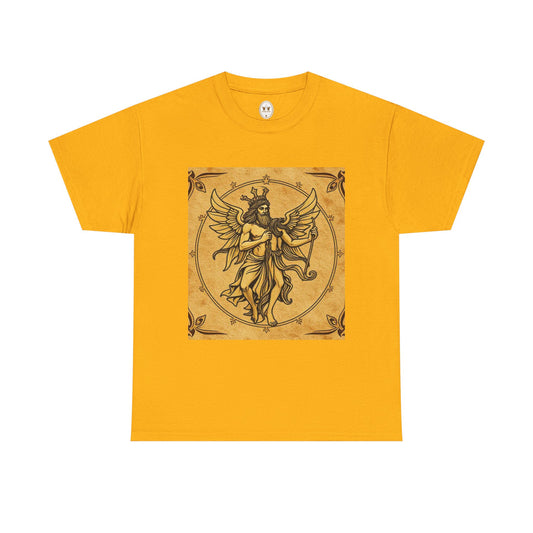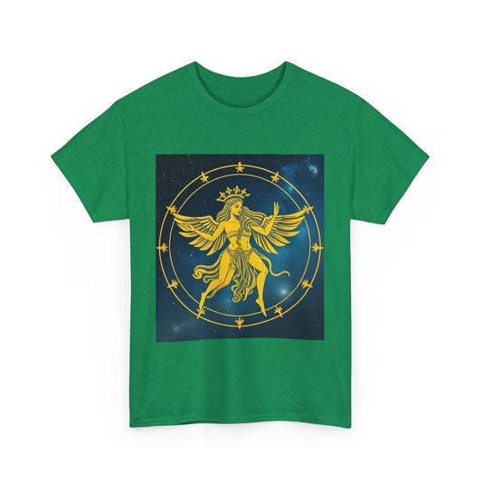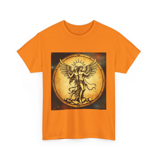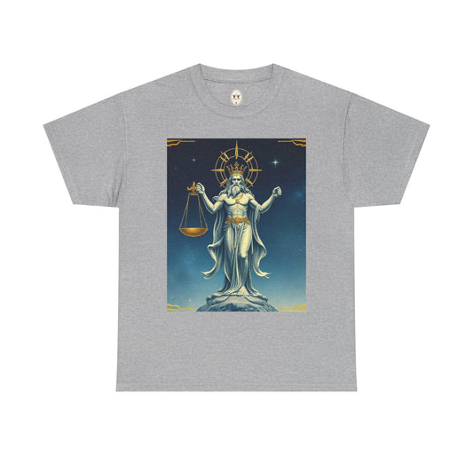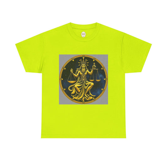 Unisex Heavy Cotton T-Shirt, Gold v1, Libra God, Zodiac Design