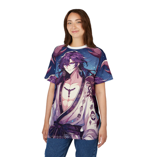 Unisex Cut & Sew T-Shirt (AOP), Anime Character, Scorpio Zodiac Design, Regular fit, 100% Polyester