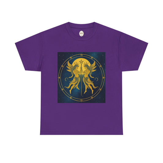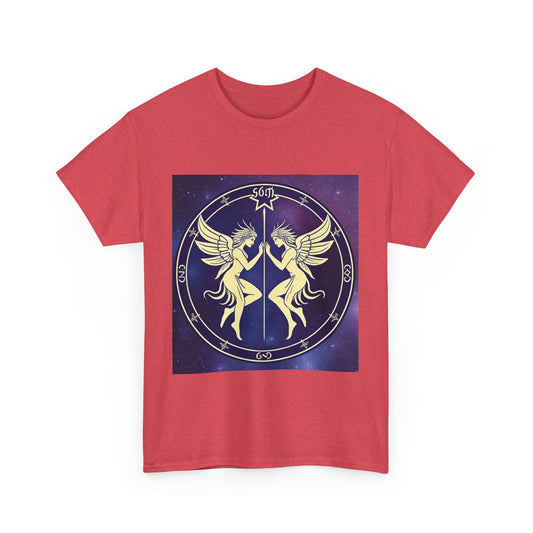 Unisex Heavy Cotton T-Shirt, Twin Angel v1, Gemini Zodiac Design