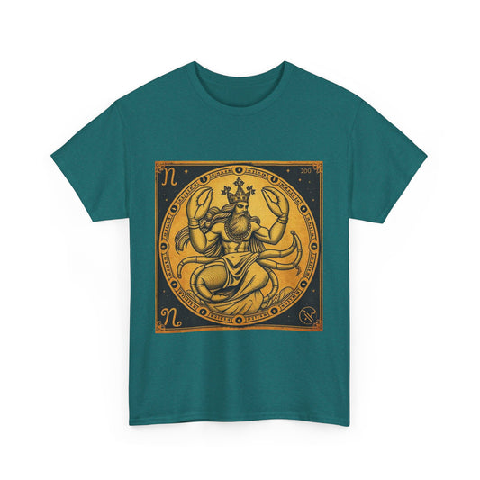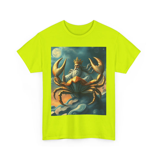 Unisex Heavy Cotton T-Shirt, Crustacean King v1, Cancer Zodiac Design