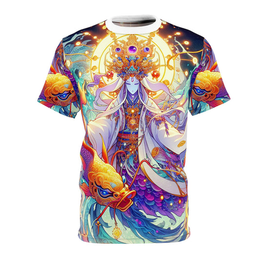 Unisex Cut & Sew T-Shirt (AOP), Guardian Duo, Pisces Zodiac Design, Regular fit, 100% Polyester