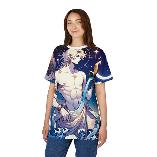 Unisex Cut & Sew T-Shirt (AOP), Anime Character, Aquarius Zodiac Design, Regular fit, 100% Polyester