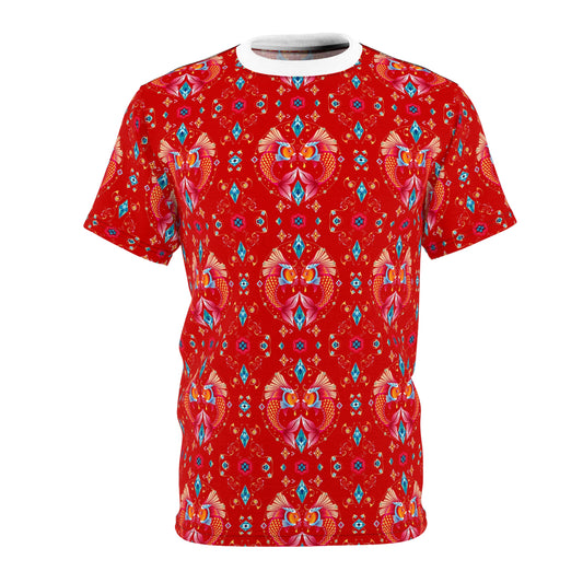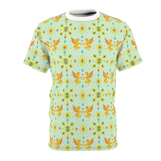 Unisex Cut & Sew T-Shirt, (AOP), Leo, Zodiac v4, Jewels Pattern