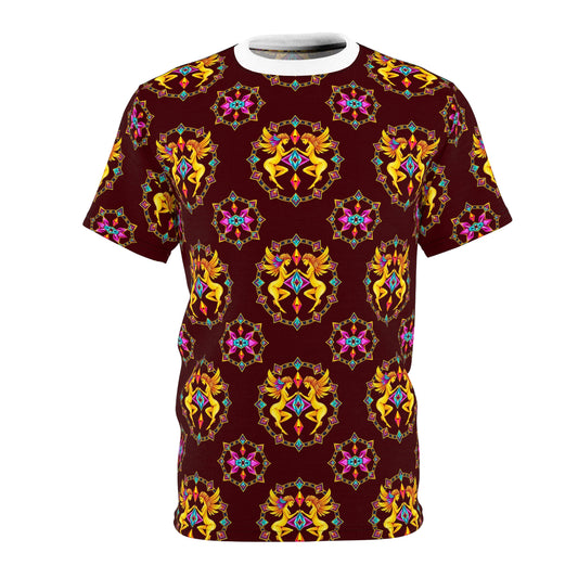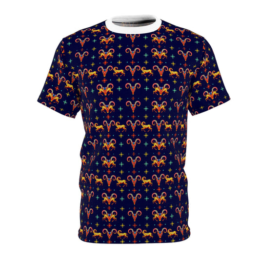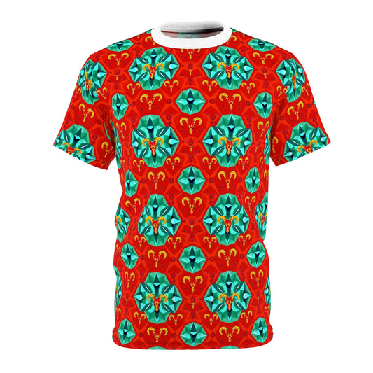 Unisex Cut & Sew T-Shirt, (AOP), Aries, Zodiac v1, Jewels Pattern