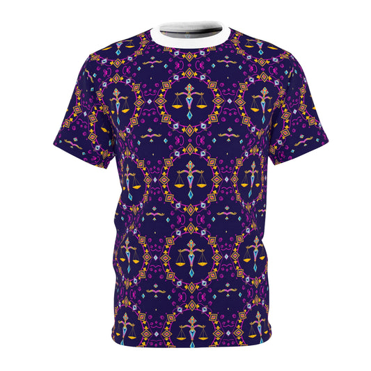 Unisex Cut & Sew T-Shirt, (AOP), Libra, Zodiac v4, Jewels Pattern