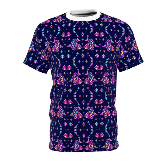 Unisex Cut & Sew T-Shirt, (AOP), Pisces, Zodiac v2, Jewels Pattern