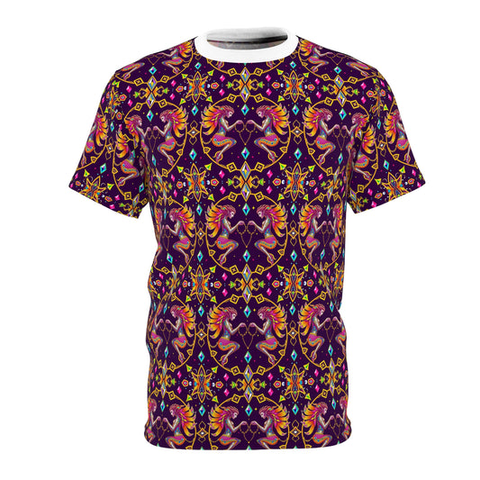 Unisex Cut & Sew T-Shirt, (AOP), Aries, Zodiac v2, Jewels Pattern