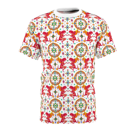 Unisex Cut & Sew T-Shirt, (AOP), Aries, Zodiac, Jewels Pattern