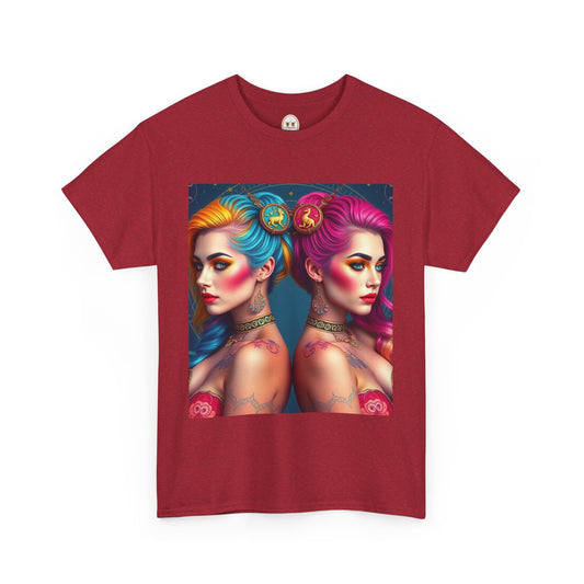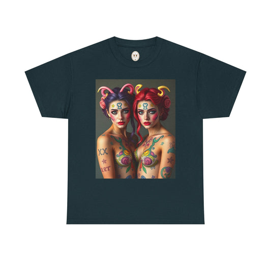 Unisex Heavy Cotton T-Shirt, Gemini, Zodiac v4, Sexy Art