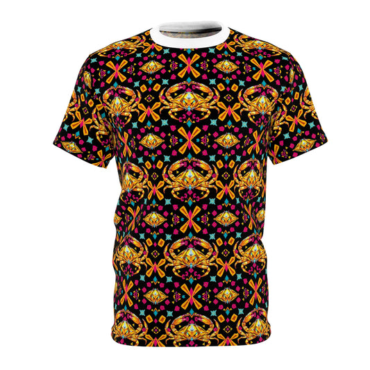 Unisex Cut & Sew T-Shirt, (AOP), Cancer, Zodiac v3, Jewels Pattern