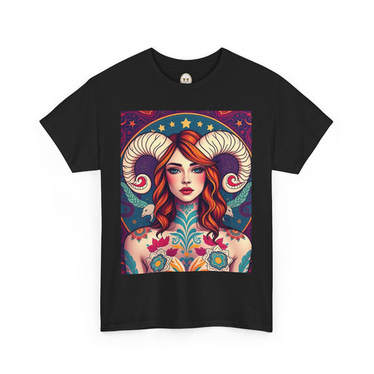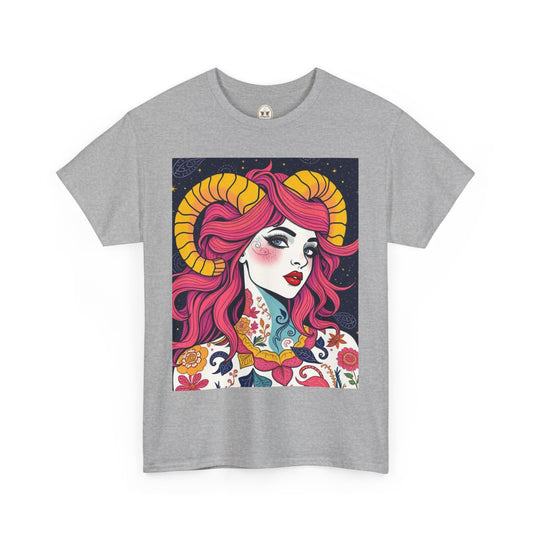 Unisex Heavy Cotton T-Shirt, Aries, Zodiac v2, Sexy Art
