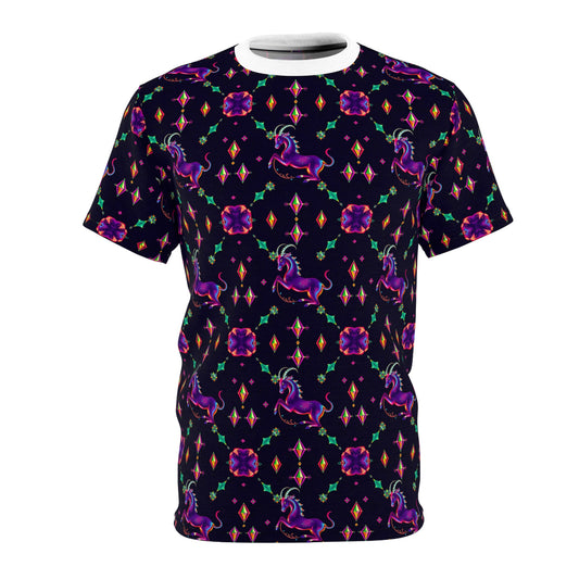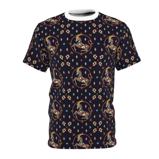 Unisex Cut & Sew T-Shirt, (AOP), Capricorn, Zodiac v2, Jewels Pattern