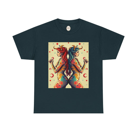 Unisex Heavy Cotton T-Shirt, Gemini, Zodiac v2, Sexy Art