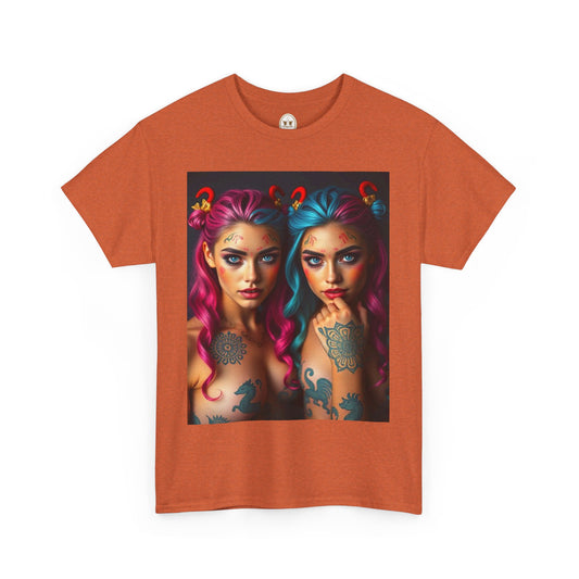 Unisex Heavy Cotton T-Shirt, Gemini, Zodiac, Sexy Art